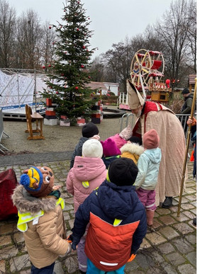 Eine weitere Kindergruppe besuchte mit ihren Erzieherinnen und Erziehern das Weihnachtsmarkt-Opening am Schloss Martfeld. Dort warteten leuchtende Kinderaugen beim Treffen mit dem Nikolaus sowie fröhliche Fahrten im Riesenrad und auf dem Karussell.