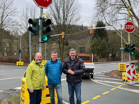 Die Kreuzung galt lange als Unfallschwerpunkt. Zuletzt verunglückte dort im Juni ein Motorradfahrer tödlich. Deshalb traf sich im 2. Halbjahr 2025 auch die Unfallkommission für den Ennepe-Ruhr-Kreis, bestehend aus Vertreterinnen und Vertretern der Stadt Schwelm, der Polizei, von Straßen.NRW, der Bezirksregierung sowie des Ennepe-Ruhr-Kreises zum Ortstermin und entschied sich zunächst für eine mobile Ampelanlage, um die Situation vor Ort zu testen und zu beobachten. Da sich die Ampel positiv auf das Verkehrsgeschehen auswirkt, entschied man sich im nächsten Schritt nun eine dauerhafte Ampelanlage an dieser Stelle zu installieren. Gleichzeitig soll dort ein Radweg eingerichtet werden. So können nun Rad- und Motorradfahrer, Autos und Fußgänger die belebte Kreuzung sicherer passieren.